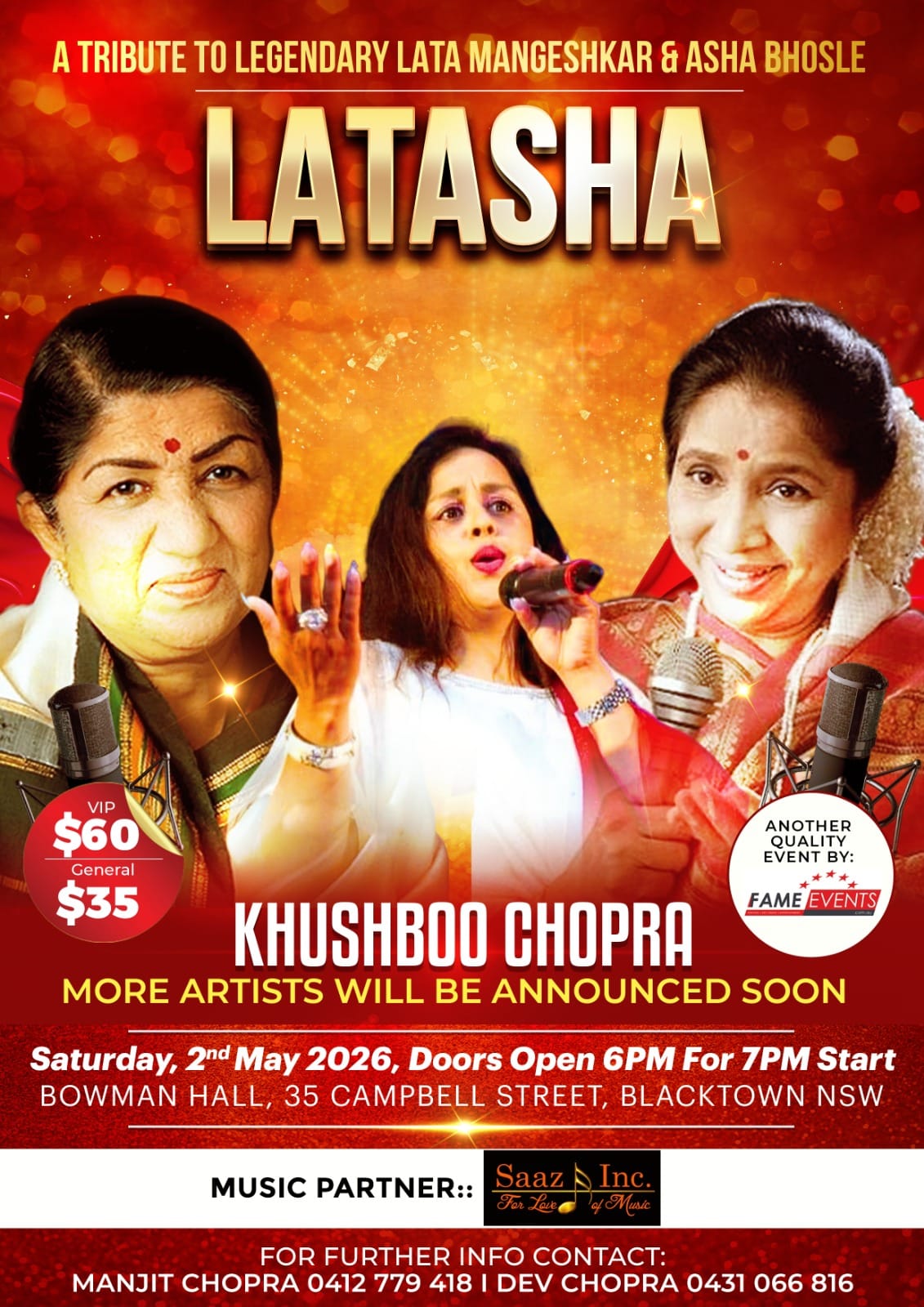 Experience a timeless musical journey as Fame Events presents LATASHAβa grand tribute to the legendary queens of Indian cinema, Lata Mangeshkar & Asha Bhosle! πΆπ