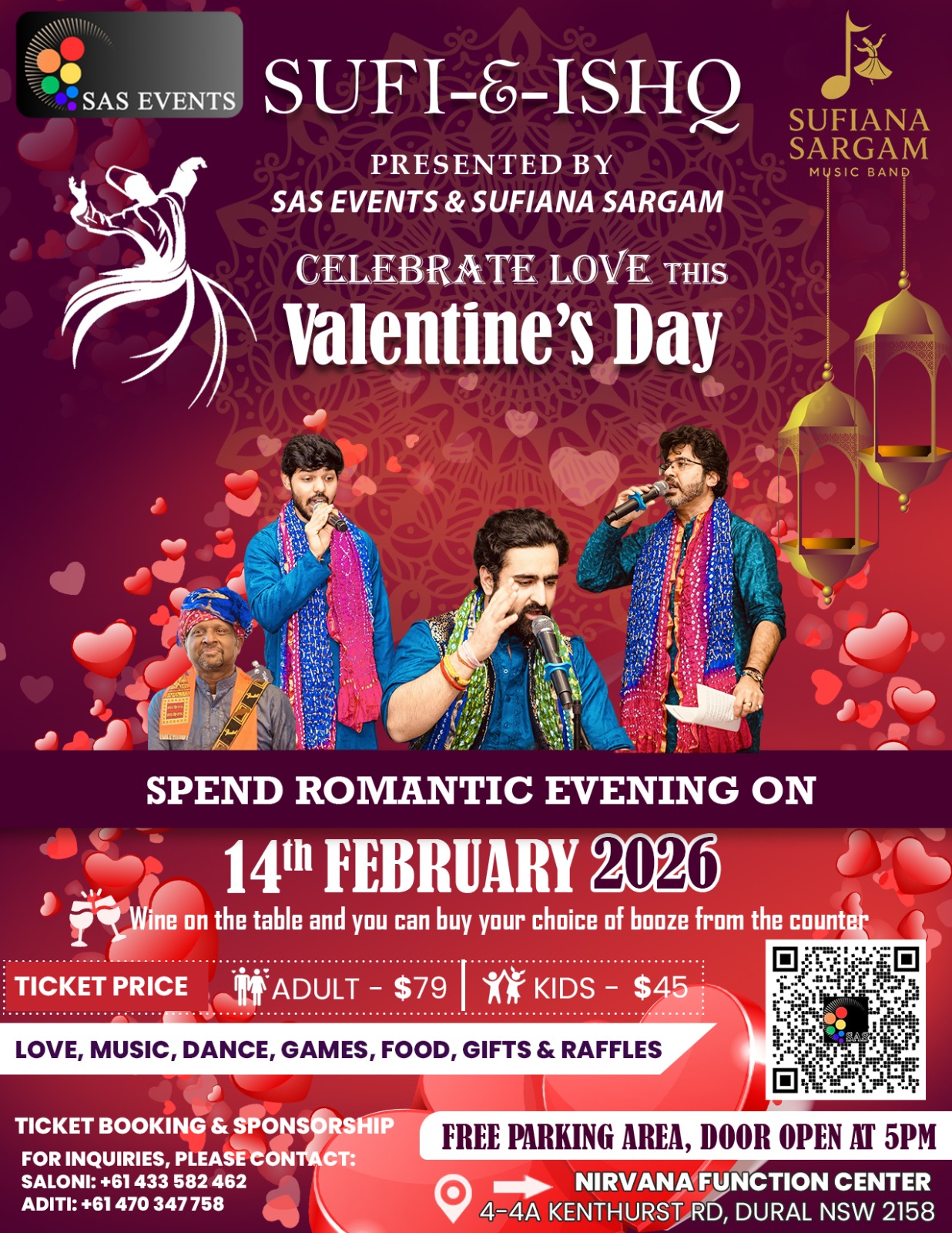 SAS Events in collaboration with Sufiana Sargam invites you to a magical and soulful Valentineβs celebration! ππΆ