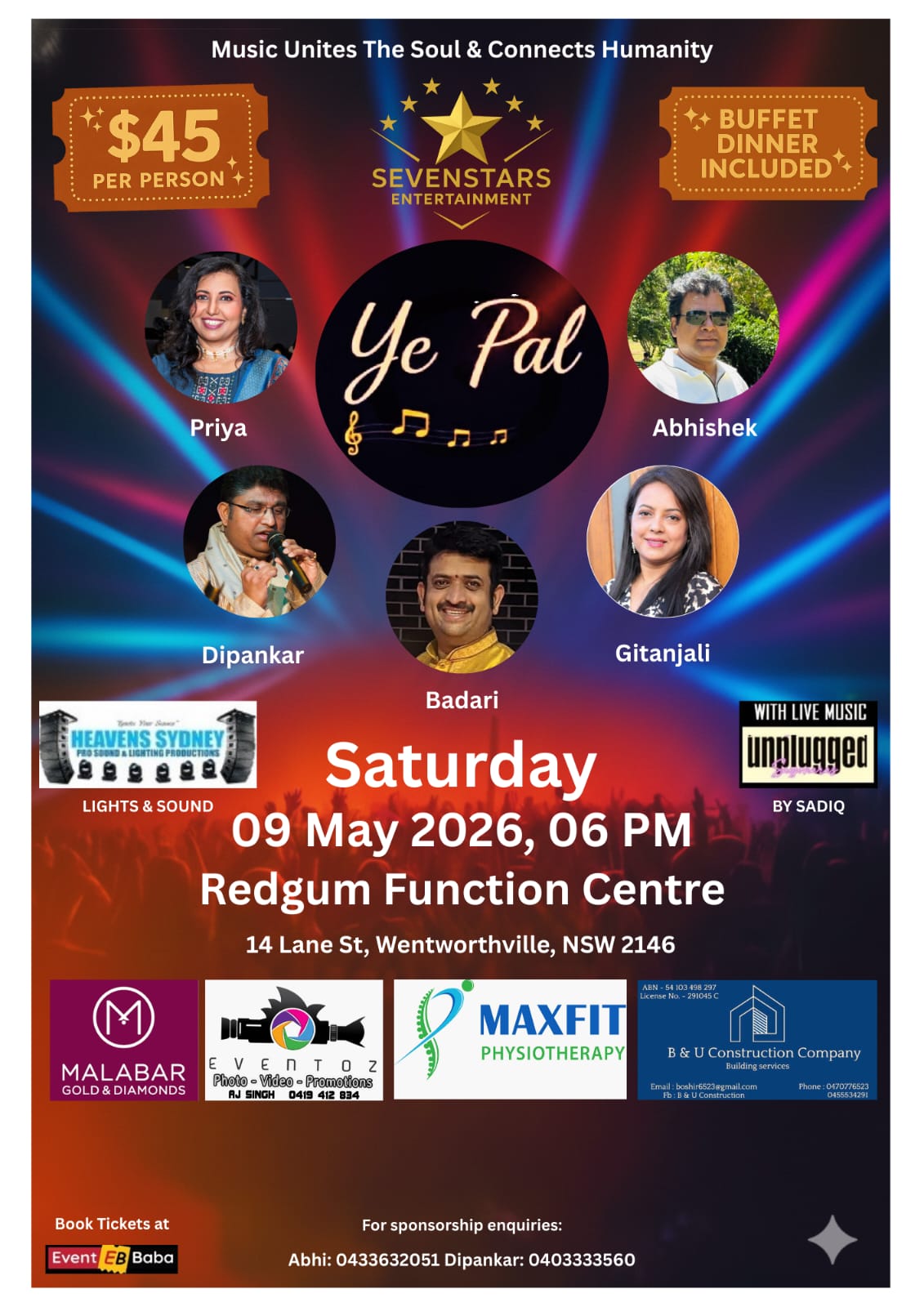 Join us for a magical evening where melodies transcend boundaries! Sevenstars Entertainment invites you to Ye Pal, a spectacular musical journey featuring an incredible lineup of talented vocalists and live unplugged music. π€π
